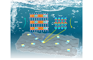 In consideration of application prospect of non-noble metallic materials catalysts, the study of exploring more highly effective electrocatalysts has been focused on by researchers. Herein, a novel strategy is employed to construct a heterojunction consisting of metal phosphide NixFeyP and layered double hydroxide (LDH) with graphene oxide (GO) as conductive support. By adjusting the molar ratio of Ni to Fe, a series of heterojunctions with mixed valence state Feδ+/Fe3+ and Niδ+/Ni2+ (δ is likely close to 0) redox couples are achieved and strong synergistic effects towards overall water splitting performance are found. The optimized catalyst with a Ni/Fe molar ratio of 0.72:0.33, namely Ni0.7Fe0.3P/LDH/GO, delivers ultra-low overpotentials for hydrogen evolution reaction (HER) and oxygen evolution reaction (OER) of 79 and 198 mV at the current density of 10 mA·cm-2, respectively. Furthermore, for overall water-splitting practical application, it only requires 1.526 V at 10 mA·cm-2 with robust stability, which is superior to most reported electrocatalysts. Experimental results demonstrate the improved electronic conductivity, enlarged electrochemically active area and accelerated kinetics together account for the enhanced performance. This work supplies new prospects for the promotion and application of such heterojunction electrocatalysts in overall water splitting.