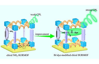 by using liquid phase epitaxial layer by layer (lbl) method. The resulted Zn2(D/Lcam)2Pr-NH2 SURchirMOF shows strong chirality and luminescence but weak CPL emission at 390