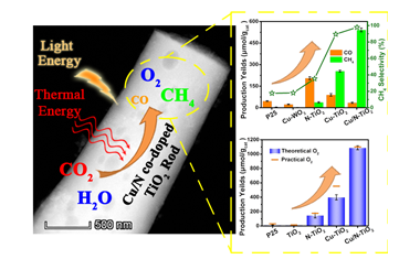 CO2 conversion, photothermal catalysis, rod-like, TiO2, co-doped