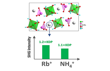 The co-crystallization of telluric acid and iodate gives rise to two noncentrosymmetric crystals AIO3·H6TeO6 (A = Rb+, NH4+). They show different intensity of SHG responses due to the slight change of the orientation of [IO3] and [Te(OH)6] groups induced by different cations in A-site.