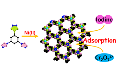 Cationic MOF; Pyrazole-imidazole heterotopic ligand; Cr2O72– adsorption; Iodine adsorption