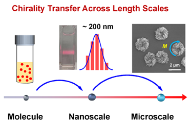 Stride the chirality transfer across length scales by merging the boundaries between solution and interfacial self-assembly
