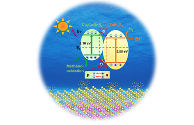A novel 0D/2D Cu2CoSnS4/ZnIn2S4 p-n heterojunction photocatalyst is developed to efficiently generate H2 from water splitting under visible-light irradiation. The internal electric field at Cu2CoSnS4/ZnIn2S4 interface promotes the separation of photogene-rated charges and enables the accumulation of valence band electrons in ZnIn2S4 for fast water reduction reaction.