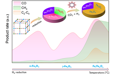 Iron oxides; Photocatalysis; CO2 hydrogenation; Structural evolution