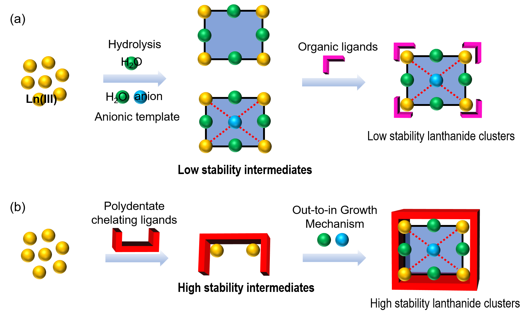 In summary, the proposal and development of ligand chelation method not only promotes the progress of lanthanide cluster crystal engineering, but also provides opportunities for the construction of highly stable lanthanide clusters. In addition, the introduction of multidentate chelating ligands promotes the self-assembly mechanism of lanthanide clusters and takes a big step towards the controllable construction of lanthanide clusters of specific shapes.