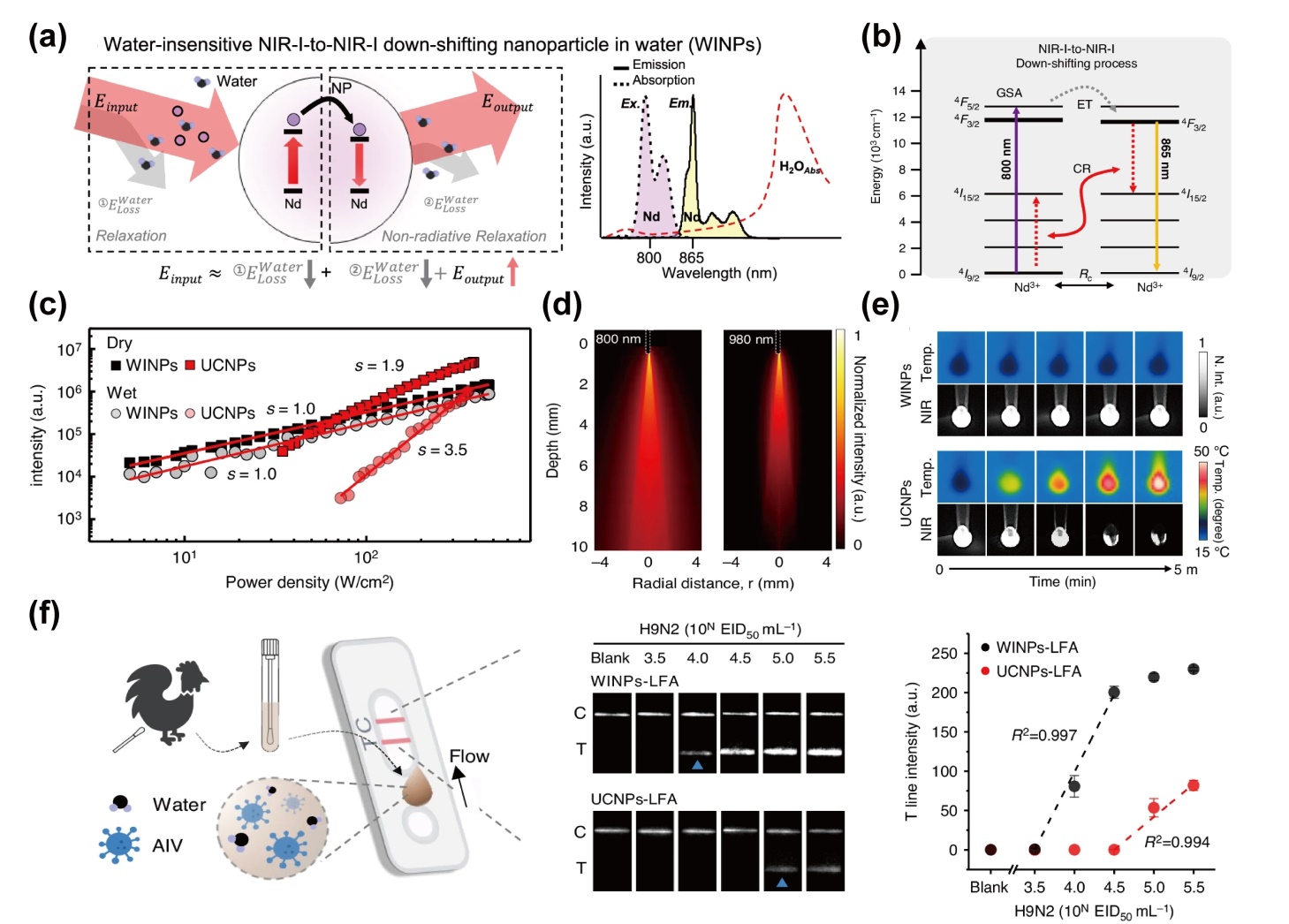 spectral shifts; (2) exploiting the intrinsic NIR-II emission of Nd3+ (e.g., ~1060 nm and ~1330 nm transitions) to develop probes with deeper tissue