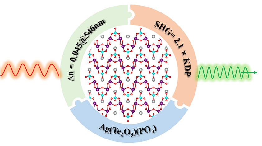 Based on a functional group composite strategy, the first Ag-containing phosphate-tellurite nonlinear optical (NLO) crystal, Ag(Te2O3)(PO4), was synthesized via a subcritical hydrothermal method. This crystal crystallizes in the noncentrosymmetric space group Pmn21, featuring a unique zigzag two-dimensional [(Te2O3)(PO4)]∞ layer. It possesses the strongest powder second-harmonic generation (SHG) response among all reported phosphate-tellurite compounds, reaching 2.1 × KH2PO4, along with a moderate birefringence of 0.045@546 nm. Theoretical calculations indicate that the TeO4 group with stereochemically active lone-pair electrons, together with AgO7 polyhedra and PO4 group, synergistically contribute to its optical properties. This functional group composite strategy not only facilitates the integration of phosphate and tellurite units with Ag+ cations but also offers a versatile route for designing NLO materials across diverse inorganic systems.
