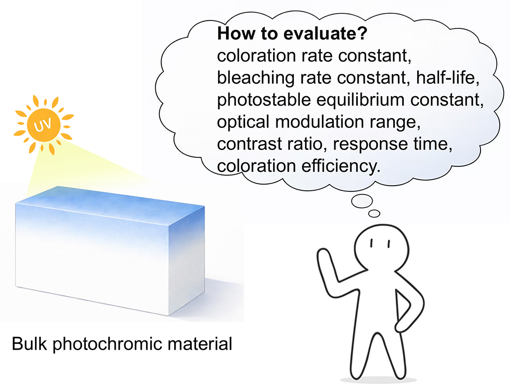 The long-standing absence of standardized assessment protocols for bulk photochromic materials has hindered reliable performance comparisons across studies reported by different research groups. Here, we introduce a standardized testing protocol along with a set of nine key parameters—coloration rate constant, bleaching rate constant, half-life, photostable equilibrium constant, optical modulation range, contrast ratio, response time, cycling stability and coloration efficiency—for evaluating the performance of bulk photochromic materials. Using photochromic inorganic-organic hybrid phosphonate-lanthanide-polyoxoniobates (RA-Ln-PONb, Ln = Dy, Eu, Lu; RA = risedronic acid) as a case study, we successfully validate the rationality of this protocol and demonstrate that these parameters collectively enable a comprehensive, multi-dimensional assessment of photochromic performance. This work provides an important methodological foundation for comparative studies of different bulk photochromic materials.