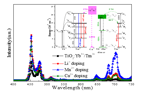 enhanced the blue and red upconversion (UC) emissions in TiO