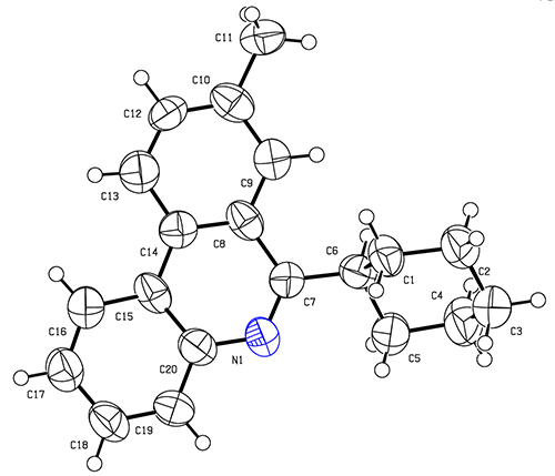 system, space group Fdd2 with a = 41.178(19), b = 30.389(8), c = 4.8182(17) Å, β = 90°, C20H21N, Mr = 275.38, Dc = 1.213 g/cm3, V = 6029(4) Å3, Z = 16, F(000) = 2368, µ(MoKa) = 0.527 mm-1, T = 240(2) K, 2200