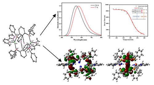 the solid state, the complex exhibits yellowish-green emission with a peak wavelength
