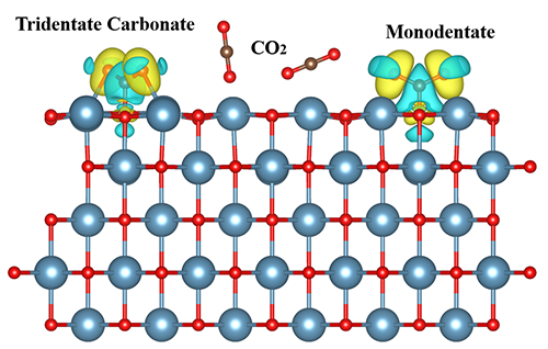 surface O atom through C, forming monodentate surface carbonate species and