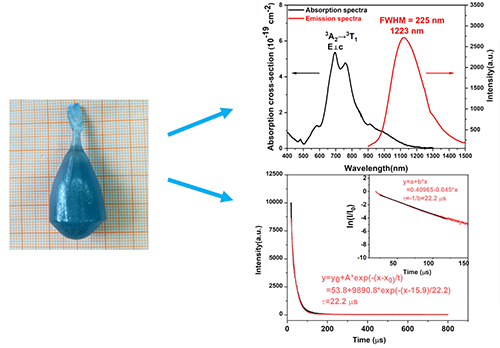 shows strong absorption at 693 and 762 nm and a broad emission band with