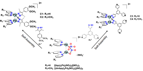 synthesized by two bifunctional ligands doubly bridged by the [(bpy)Pd]