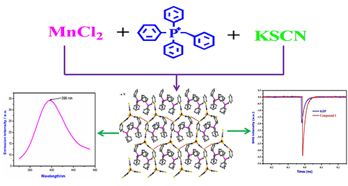 assembly of benzyltriphenylphosphorus chloride, isothiocyanate and manganese chloride, which displays both strong SHG response and purple luminescence. Compound