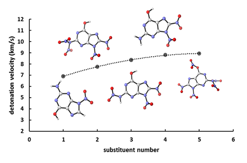 nitro-substituted derivatives of guanine are designed and calculated to explore