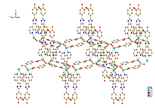 1 exhibits a one-dimensional (1D) double-chain architecture, and the H-bond intersections link the 1D double-chain architecture into a 2D layer structure. TG analysis shows clear courses of weight loss, which corresponds to the decomposition of different ligands. We also study the luminescent properties of complex
