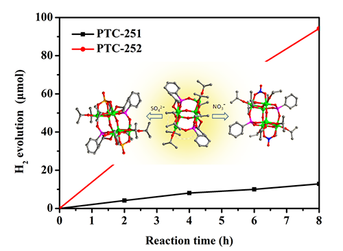 of these obtained PTCs have been studied, with sulfate decorating PTC-252 presenting a maximum H2 production rate up to 110.95 μmol·g-1·h-1.