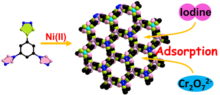 Cationic MOF; Pyrazole-imidazole heterotopic ligand; Cr2O72– adsorption; Iodine adsorption