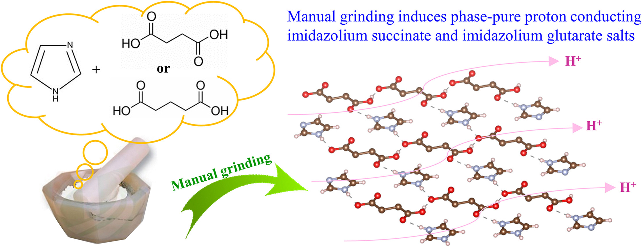 Organic salts; Proton conducting; Mechanochemistry; Powder neutron diffraction; Solventless synthesis; Manual grinding; Conductivity; Ea energy
