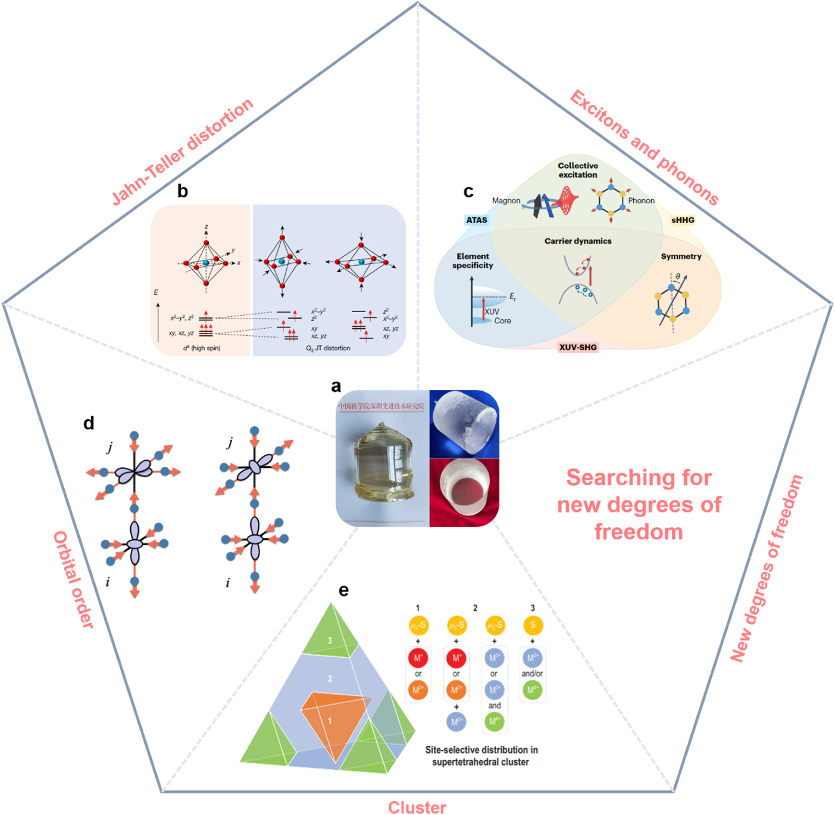 The search for new degrees of freedom in photoelectric functional crystals is a promising area of research that has the potential to revolutionize the development of advanced optoelectronic materials and devices. Searching for new degrees of freedom is the key to designing photoelectric functional crystals. By coupling the multiple degrees of freedom of the molecules, the contributions of the crystal properties can be clearly identified, and multi-scale quantum design of photoelectric functional crystals can be achieved from the origin of functionality. Through exploring novel phenomena and mechanisms, researchers can potentially discover materials with unprecedented photoelectric functionalities and superior performance. The synergy between experimental and theoretical studies is crucial for the discovery and optimization of these materials, as it enables researchers to accurately predict the behavior of materials and guide experimental efforts. The development of new photoelectric functional crystals has significant implications for the fields of optoelectronics and solar energy conversion technologies. The discovery of new materials with enhanced photoelectric functionalities has the potential to increase the efficiency and reliability of solar cells, leading to more widespread adoption of solar energy. Furthermore, the development of novel optoelectronic devices based on photoelectric functional crystals could lead to breakthroughs in areas such as data storage and communication. Overall, continued research and development in this area will pave the way for the next generation of optoelectronics and solar energy conversion technologies.