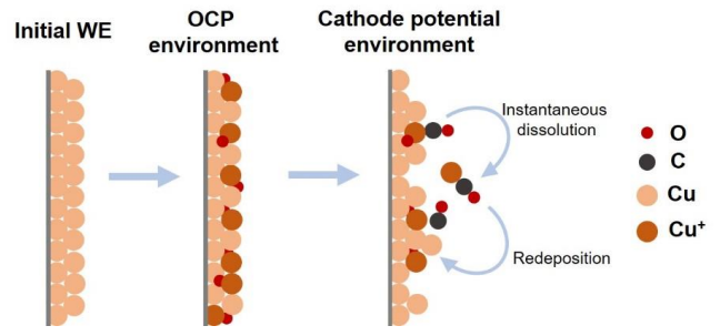 dissolution-redeposition is the way of Cu surface reconstruction, and Cu+ species are the main intermediates driving this process. And the adsorption of