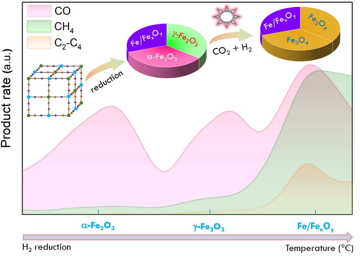 Iron oxides; Photocatalysis; CO2 hydrogenation; Structural evolution