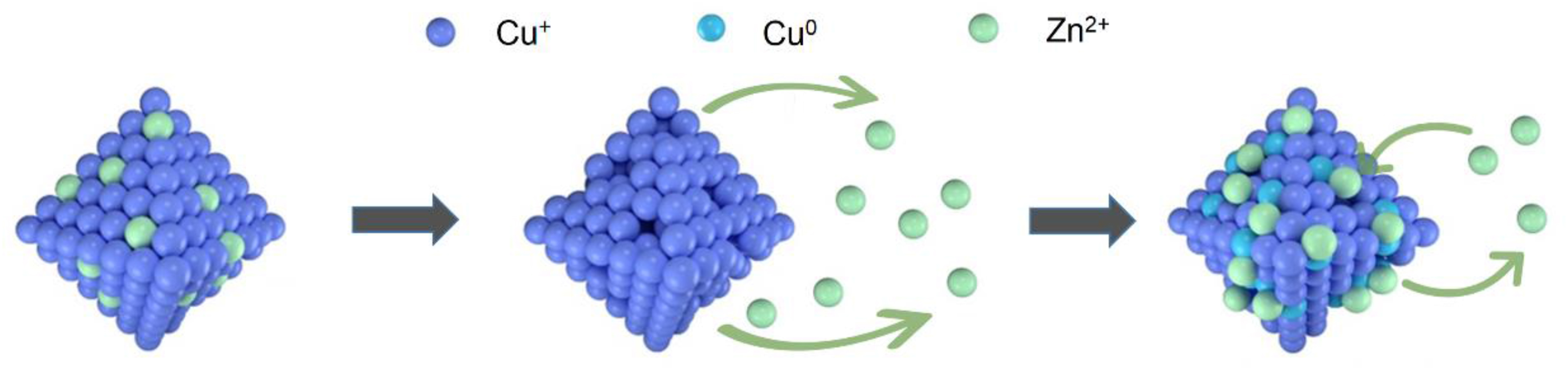 In summary, Cu-based bimetallic catalysts exhibit outstanding activity and selectivity in CO2RR, attributed to the distinctive electronic structure and adsorption energy of key intermediates. Furthermore, the leaching and re-deposition mechanism of the amphoteric metal (Zn, Al), influenced by the strong alkaline electrolyte and reduction potentials, has been demonstrated to play a crucial role in the performance of Cu-based bimetallic catalysts. In conclusion, this study not only introduces an effective strategy for designing efficient Cu-based catalysts for CO2RR towards C2+ products but also provides new insights into the surface reconstruction of amphoteric metal-doped Cu2O catalysts.