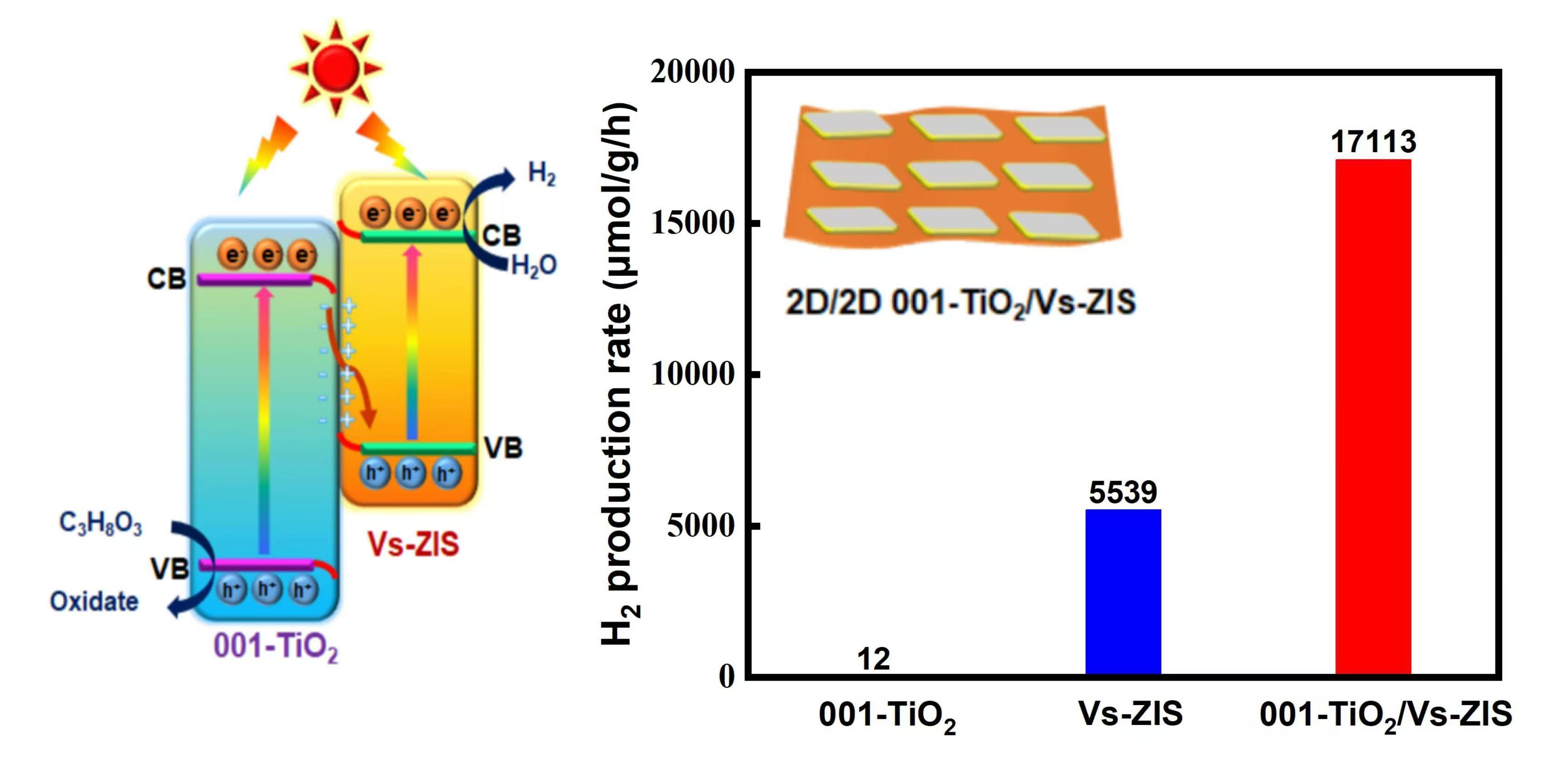 Photocatalytic water splitting; 001-TiO2; Vs-ZIS; 2D/2D; Z-scheme heterostructure