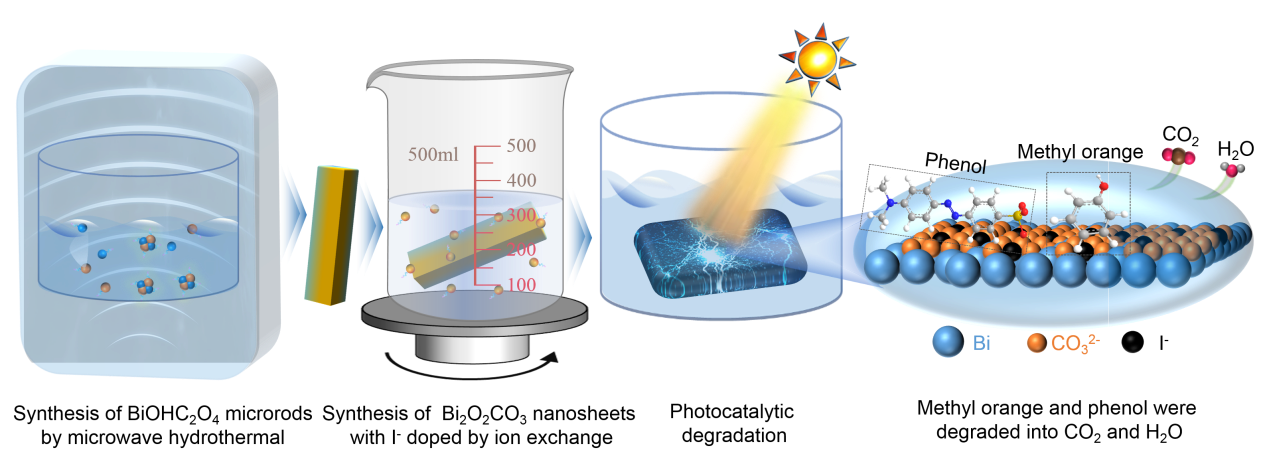 Bi2O2CO3 nano-sheet; I- doping; Ion exchange; Band gap energy; Photocatalytic performance