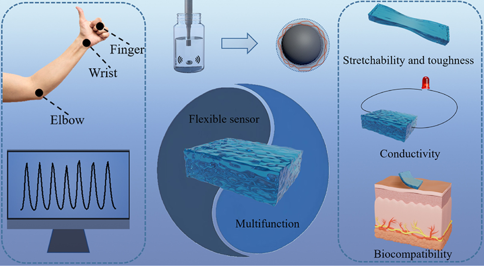 Hydrogels possess significant potential for the development of multifunctional soft materials in smart sensors and wearable devices, attributed to their distinctive properties of softness, conductivity, and biocompatibility. Nevertheless, their widespread application is frequently limited by inadequate mechanical strength and strain capacity. This study introduces a meticulously engineered hydrogel system, LM/SA/P(AAM-co-BMA), which integrates eutectic gallium-indium alloy (EGaIn) as both a polymerization initiator and a flexible filler. The resultant hydrogel demonstrates remarkable tensile strain capabilities of up to 2800% and a tensile strength of 2.3 MPa, achieved through a synergistic interplay of ionic coordination, hydrogen bonding, and physical polymer interactions. Furthermore, the hydrogel exhibits outstanding biocompatibility, recyclability, and stable long-term storage, rendering it an ideal candidate for the continuous monitoring of high-intensity physical activities.