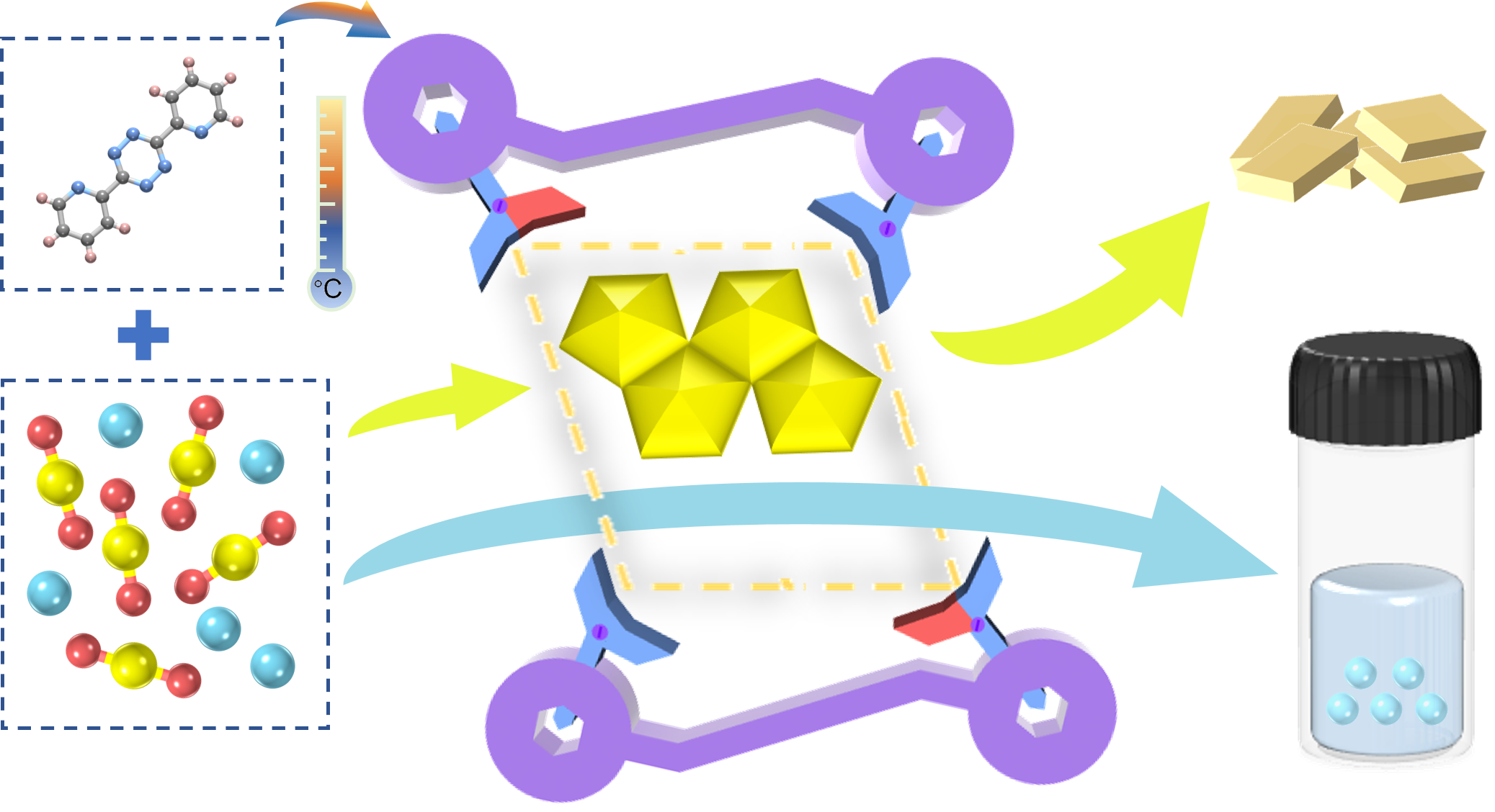 Partitioning of actinides from lanthanides is pivotal for advancing nuclear waste management and sustaining nuclear energy development, yet it remains a formidable challenge due to the intricate chemical behaviors of these f-block elements. In this study, we introduce 3,6-di-2-pyridyl-1,2,4,5-tetrazine (L1), whose hydrolysis product of pyridine-2-carbox-aldehyde (pyridine-2-carbonyl)-hydrazone (L2) can fractionally crystallize U(VI) ions over Ln(III) cations with high selectivity and efficiency. Through hydrolysis-induced C–N bond cleavage, L2 acts as a tetradentate ligand, coordinating with two UO22+ ions in a planar arrangement to form a zero-dimensional cluster, [(UO2)2(μ3-O)(L2)(CH3COO)]·DMF (U-L2), while lanthanide ions (Ln = La, Pr, Nd, Sm, Eu, Gd, Tb, Yb, and Lu) remain in solution due to their inability to achieve similar coordination. This selective crystallization strategy yields exceptional separation factors (SFs) between U(VI) and Ln(III), with a value of 756276 between U(VI) and Sm(III), the highest reported to date. Furthermore, this fractional crystallization separation process can be achieved under mild ambient conditions with high SFs, enabling the development of a rapid, safe and energy-efficient strategy for once-through separation of high oxidation state actinides from lanthanides.