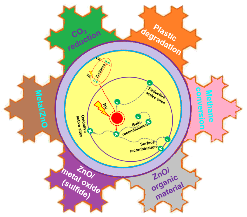 Plastic pollution and elevated atmospheric CO2 levels remain critical environmental challenges, whereas methane is increasingly recognized as a valuable feedstock for producing high-value chemicals. Photocatalysis offers a promising approach to harness abundant solar energy, converting it into sustainable and eco-friendly chemical energy for applications such as plastic degradation, CO2 reduction, and methane oxidation. ZnO-based composites stand out due to their large surface areas, tunable band structures, and abundant active sites, making them highly suitable for these photocatalytic processes. Nonetheless, pure ZnO is hindered by rapid recombination of photoinduced e-/h+ pairs and limited absorption of visible light, restricting its photocatalytic efficiency. This review explores the fundamental mechanisms, synthesis strategies, and various ZnO-based composite materials that enhance photocatalytic plastic degradation, CO2 conversion, and methane oxidation. Special attention is given to identifying key challenges and how the formation of ZnO composites addresses these issues within the different catalytic reaction pathways to improve overall photocatalytic activity. Finally, existing challenges and prospective research avenues are discussed to guide future advancements.