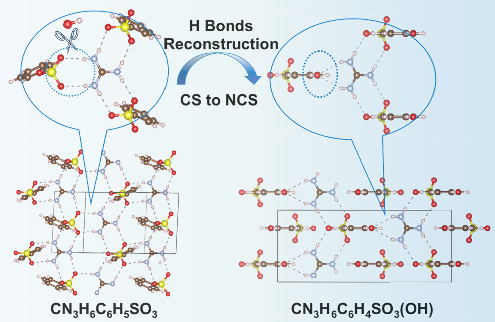From centrosymmetric CN3H6C6H5SO3 to non-centrosymmetric CN3H6C6H4SO3(OH): Hydroxyl introduced hydrogen bond reconstruction to realize strong second harmonic generation